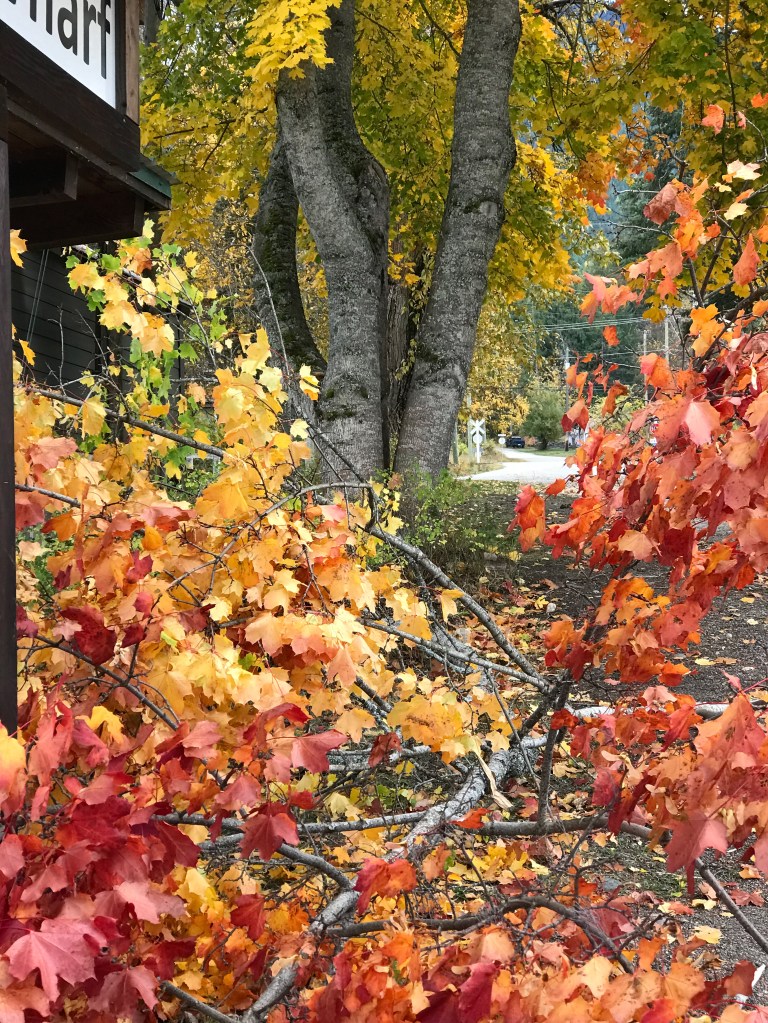 The geese and ducks were sitting in the mud down by the lake and I saw white tailed deer in the woods. Lots of crows and seagulls. And scarlet and golden leaves, bright against the sometimes blue (but usually grey) sky.